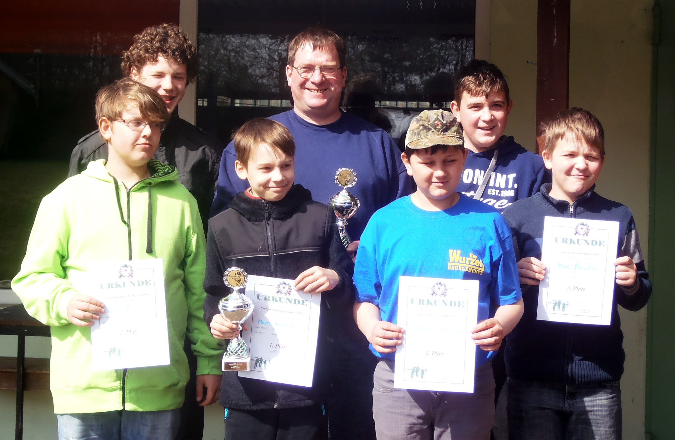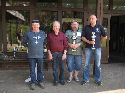 v.l.n.r.: Rudolf Scholze (1.Platz gesamt), Bäckermeister Stüdemann, Hans Jürgen Rossow (3.Platz gesamt), Thomas Möller (2.Platz gesamt)